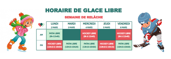 Venez faire du patin libre et du hockey libre durant la relâche ! ⛸️🏒