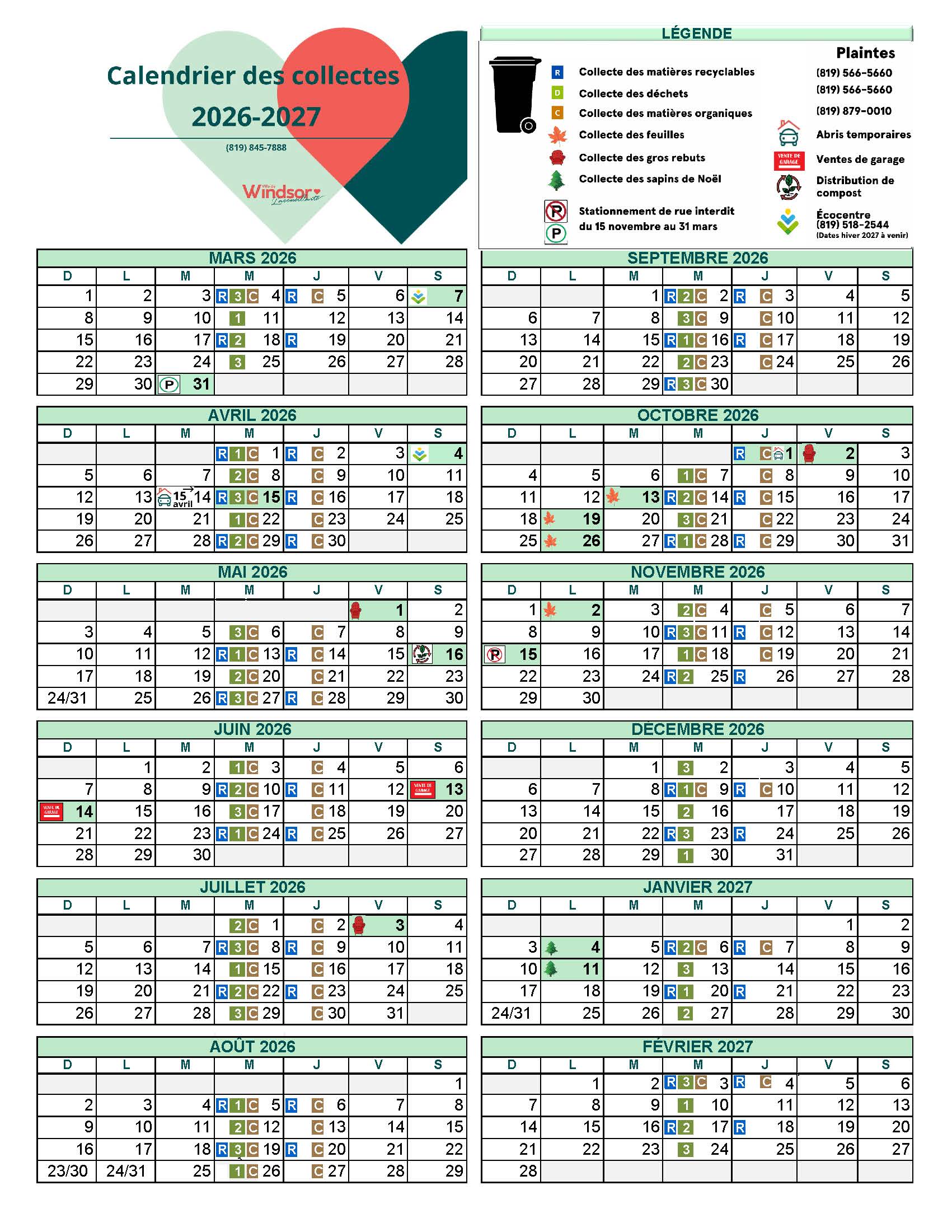 Depuis 2009, la Ville de Windsor a mis sur pied la collecte du compost et remet gratuitement une fois par année un sac de compost aux résidents. Durant l’été, de concert avec la MRC, une Escouade verte a comme objectif de sensibiliser les citoyens aux bonnes habitudes de gestion des déchets, de la récupération et du compost.